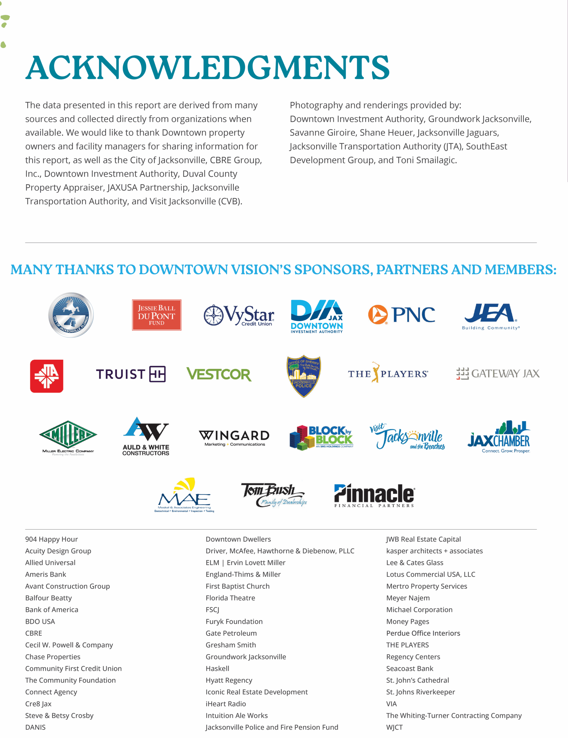 Each year, Downtown Vision tracks and analyzes Downtown’s performance in key indicators of urban revitalization, such as development and investment, residential demand, office market and employment base, transportation enhancements and tourism health to tell the story of Downtown Jacksonville, benchmark trends and support investment efforts.