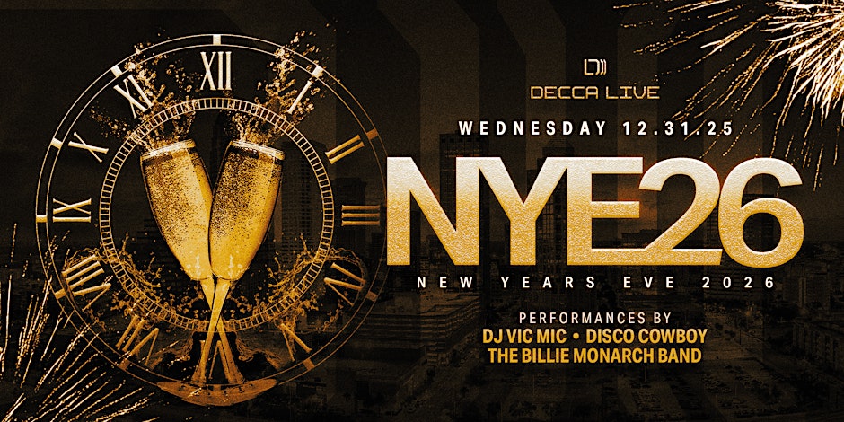 Ring in 2026 at Decca Live’s first-ever New Year’s Eve celebration, a high-energy and elevated night where live music, DJs and unforgettable moments take center stage. The evening features a live band early on, followed by top DJs keeping the dance floor moving into the new year, plus a complimentary champagne toast at midnight with Veuve Clicquot and Belaire. Guests can choose from General Admission, a premium open bar experience or VIP bottle service packages, making it one of Downtown’s most anticipated ways to welcome 2026.