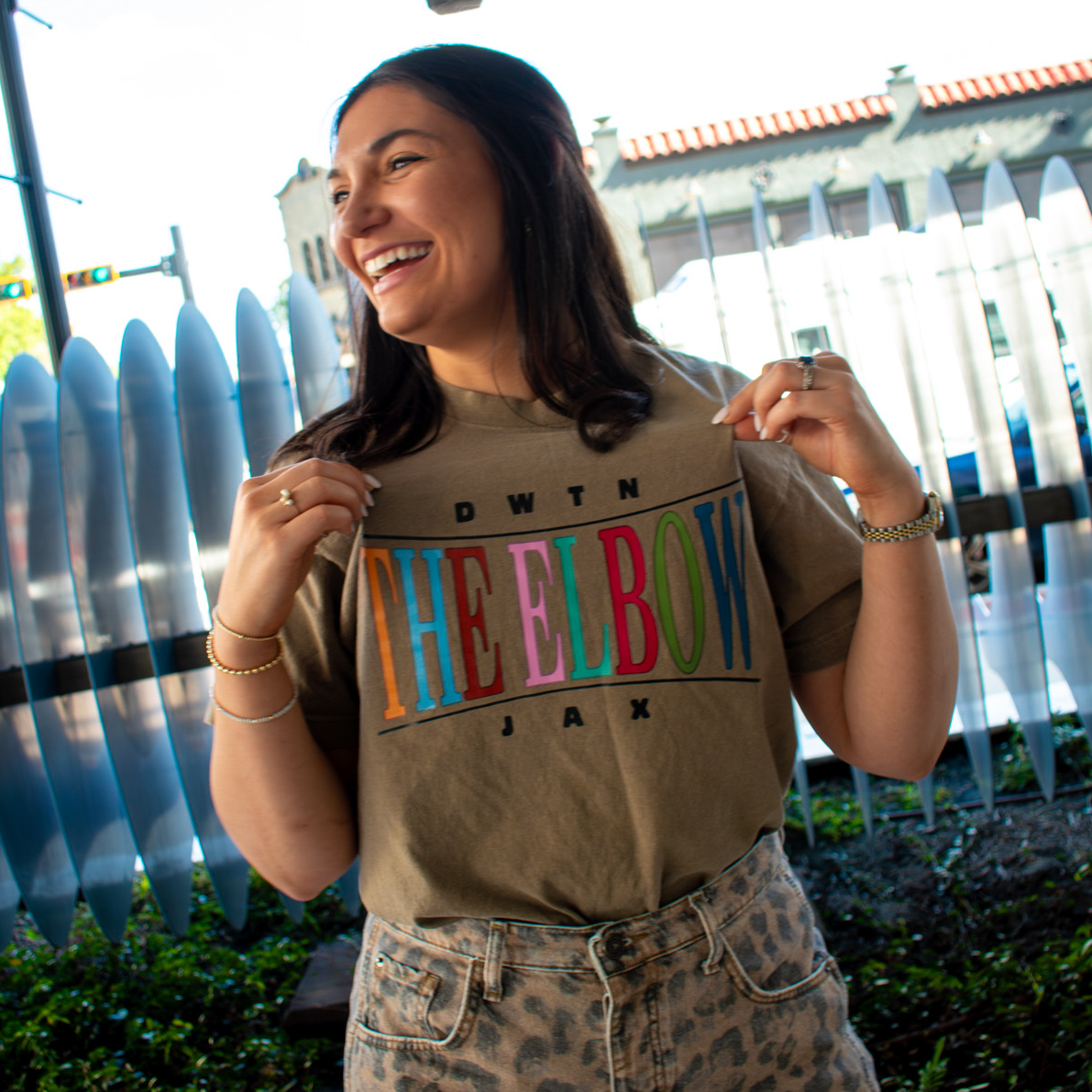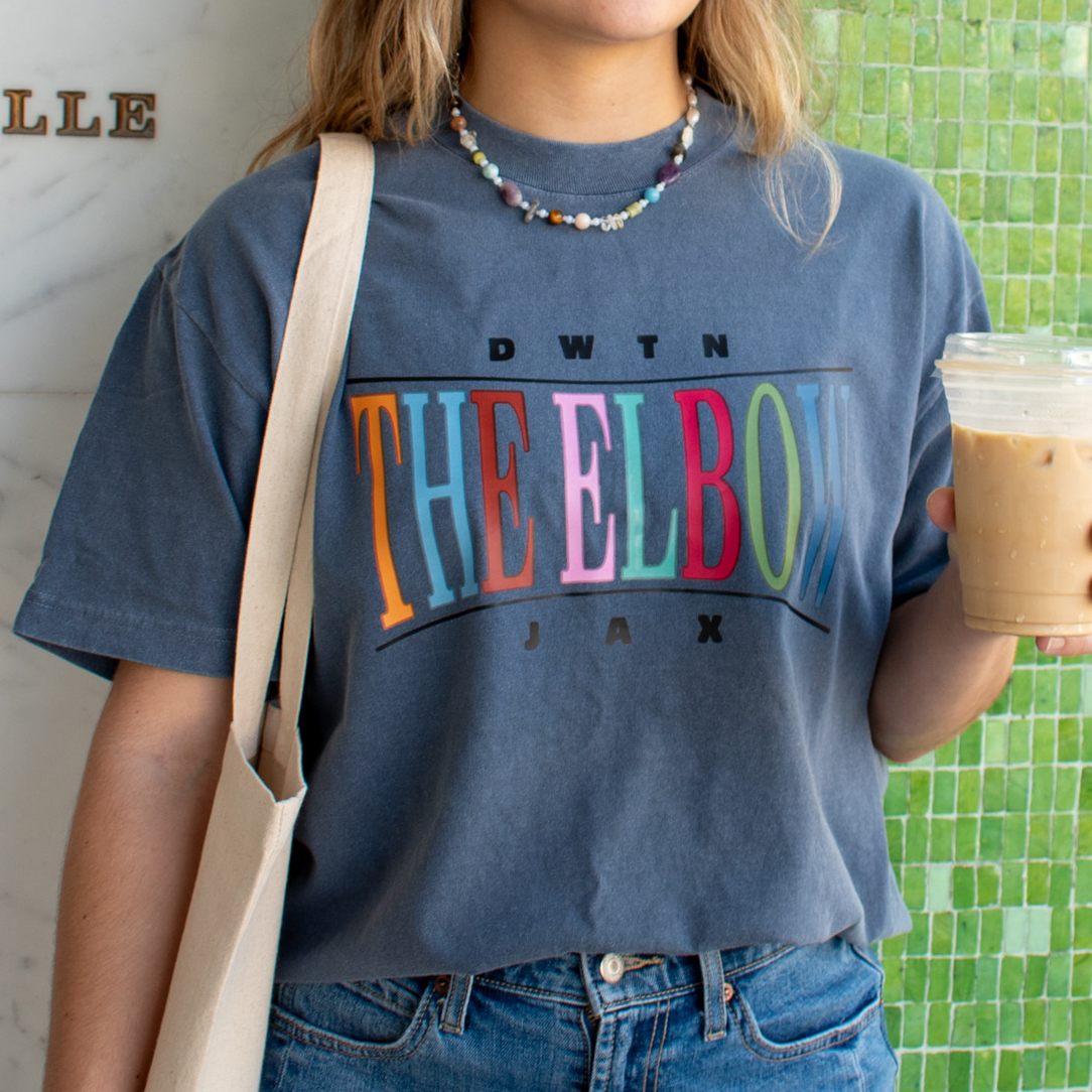 Rep Downtown Jacksonville’s nightlife district in two color options (Navy and Brown). The Elbow Tee features a bold graphic inspired by the heartbeat of DTJax—where live music, local flavor, and late nights come alive. Soft, breathable cotton and a classic fit make it perfect for concerts, bar crawls, or just showing your love for the district that never sleeps.